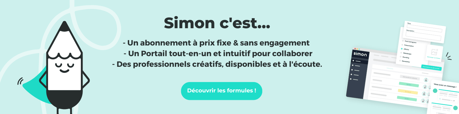 Le service graphique de Heysimon est basé sur un abonnement mensuel qui permet de commander un nombre illimité de designs pendant la durée de l'abonnement (sans engagement ou bien avec engagement et une réduction). Les designs peuvent être utilisés pour créer des contenus pour votre blog, vos réseaux sociaux, vos newsletters, vos présentations, vos supports de communication et bien plus encore.