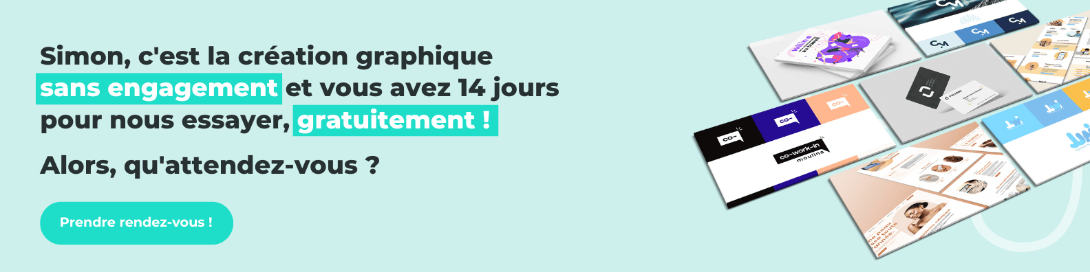 Sinon, vous pouvez également prendre directement rendez-vous avec nous pour un bilan gratuit de votre communication visuelle ! Lors de ce rendez-vous, nous vous présenterons Heysimon, la manière dont nous pouvons vous aider et en prime, vous repartirez avec une promotion particulière… Alors, qu’attendez-vous ?