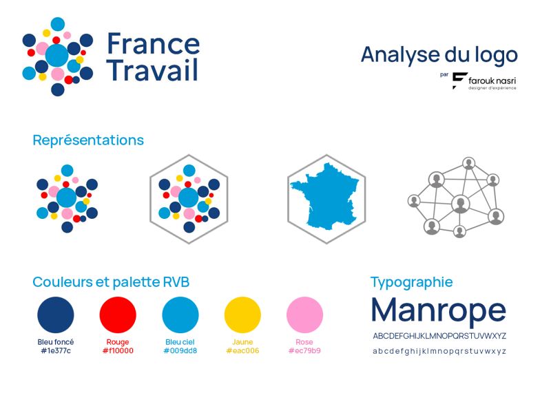 - 3. La signification profonde du design : Un design qui va au-delà de l'esthétique pour incarner les valeurs, les missions et l'engagement de France Travail, offrant un symbole de renouveau et d'engagement envers les demandeurs d'emploi et les entreprises.